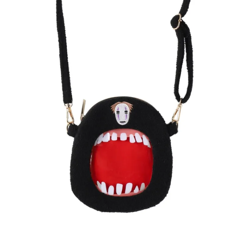 Design amusant avec la bouche ouverte permettant de voir le contenu du sac sans l’ouvrir.